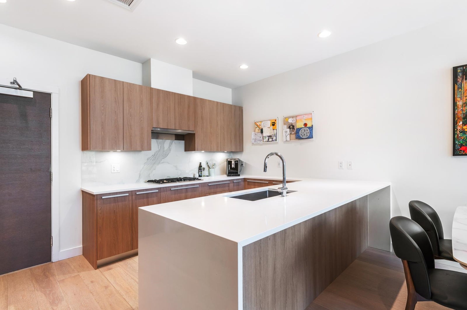LYNN VALLEY PERFECTION! This immaculately maintained 3-bed, 3-bath townhouse at The Residences offers 1,600 sq ft of premium Bosa-built living. You’ve got full A/C, central heat, and a private street-level entrance that makes life incredibly simple. The main floor is wide and bright, featuring a chef’s kitchen with a massive island. Storage is the secret weapon here: there’s a huge, wrap-around under-stairs closet for all your gear, plus a full-size locker downstairs. The half-covered outdoor deck is a total win for year-round BBQing. You’re steps from Lynn Valley Mall, two grocery stores, and your morning coffee, with a top-tier gym right in the building. It’s the ultimate combination of pristine condition and "walk-to-everything" convenience. Welcome- 2 Parking! OPEN HOUSE SATURDAY 2-4pm